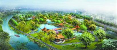 夏芳園位于煤礦設計院橋和萬泉橋之間,總面積49599平方米,全長916米,圖為效果圖